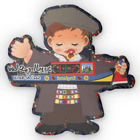 Caterer's Tea Towel with Kawaii English Canal Folk, scripted in Arabic