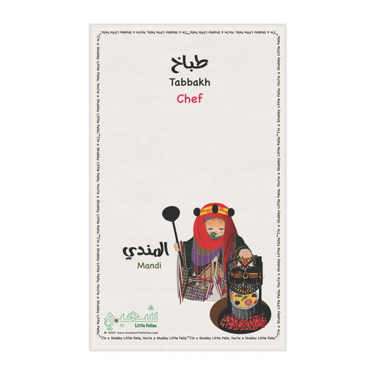 Chef's Tea Towel with Kawaii Northern Arabian Chef a Tabbakh scripted in Arabic