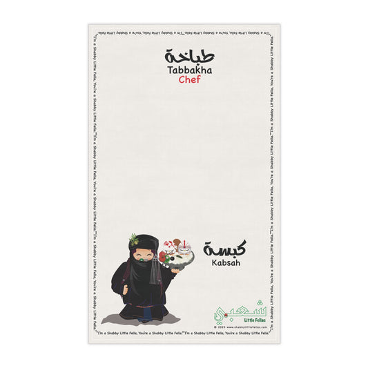 Chef's Tea Towel with Kawaii Northern Arabian Girl Tabbakha scripted in Arabic